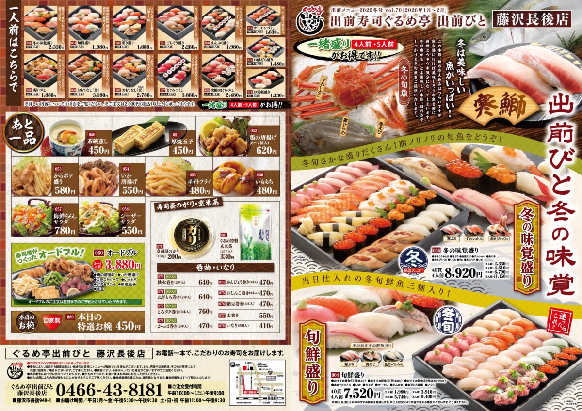 冬の旬魚を使用した出前びとおすすめのネタが盛り沢山です!