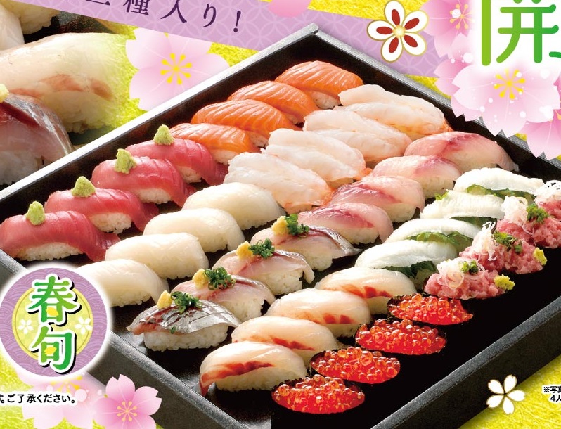 1人前10貫。 おすすめ鮮魚1(例:桜鯛) おすすめ鮮魚2(例:いさき) おすすめ鮮魚3(例:真あじ) 1人前1,980円 2人前3,910円 3人前5,740円 4人前7,520円 5人前9,400円 ※税込み価格になります。※写真は4人前です。 ・おすすめ鮮魚3種・本まぐろ中とろ・サーモン・いか 生えび・えんがわ・いくら・ねぎとろ軍艦